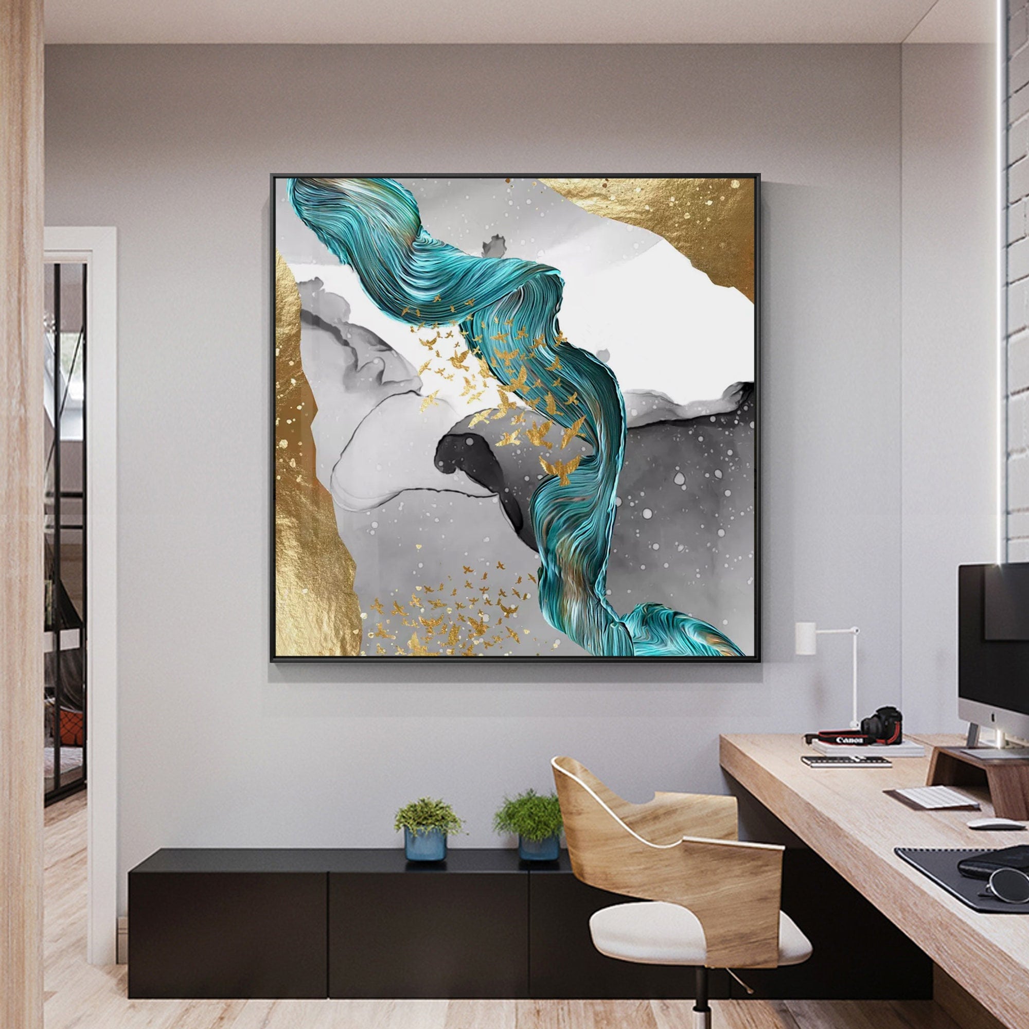 Emerald Green Gold Foil Ribbon Abstract Original Painting On Etsy