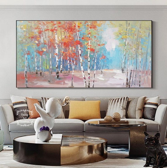 Large Birch Tree Painting Original Forest Landscape Painting Etsy